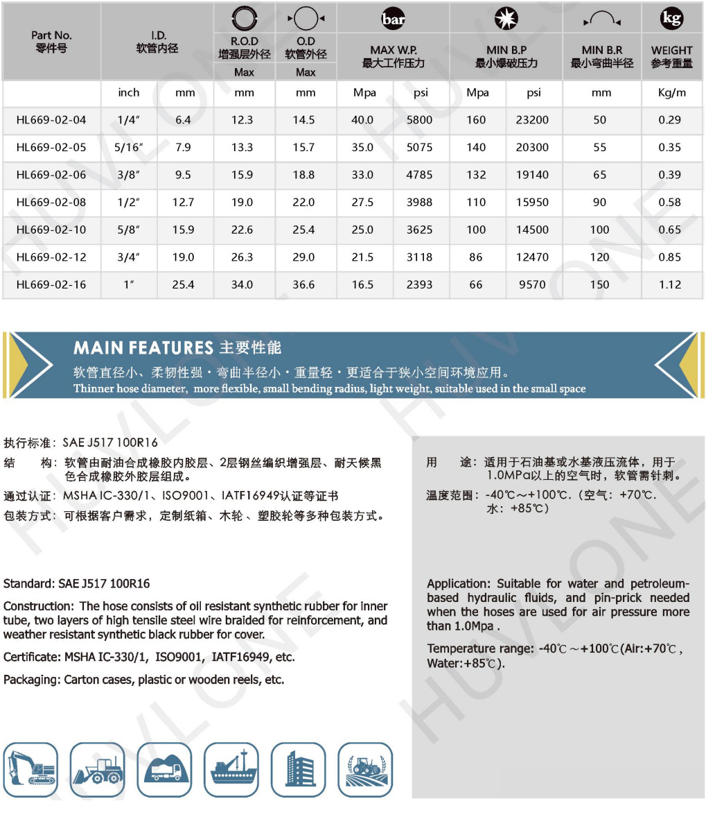 產(chǎn)品用途:適用于石油基或水基液壓流體,用于1.0MPa以上的空氣時(shí),軟管需針刺。