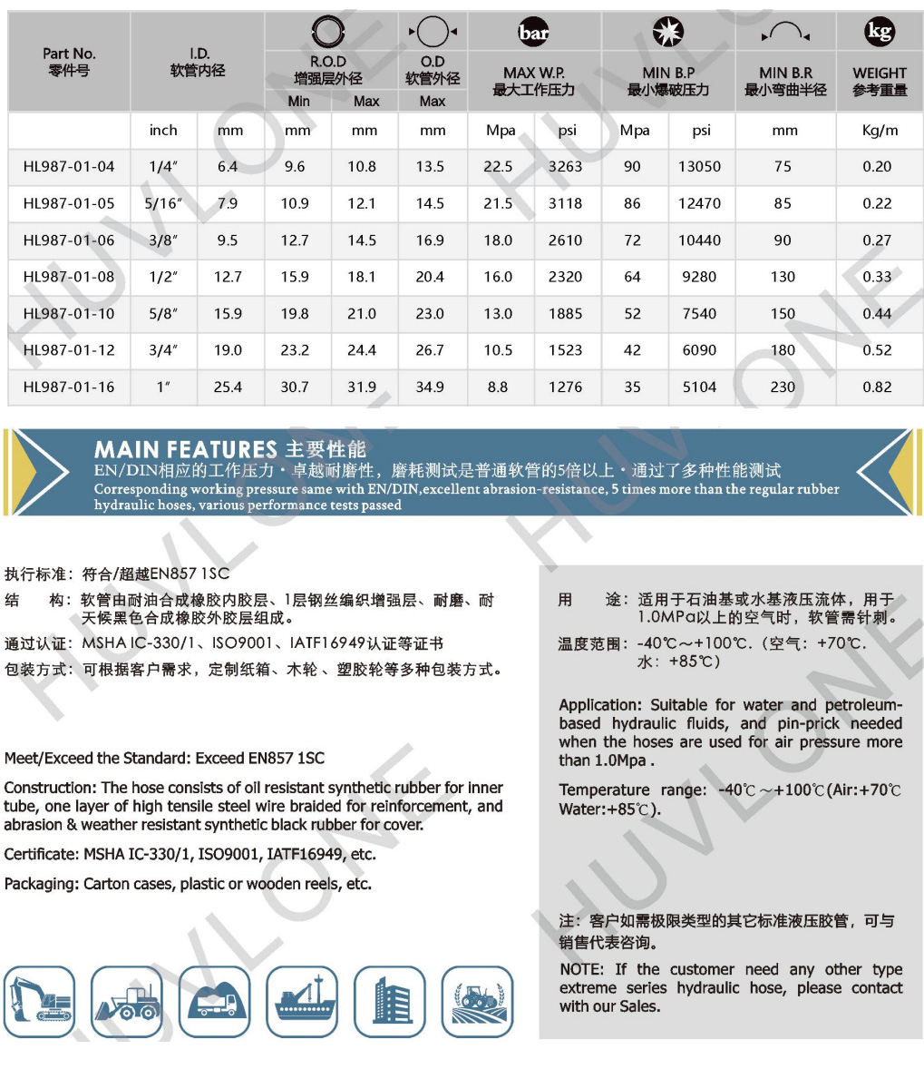 產(chǎn)品用途:適用于石油基或水基液壓流體,用于1.0MPa以上的空氣時(shí),軟管需針刺。