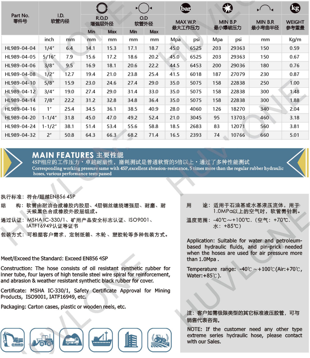 符合/超越DIN EN8564SP四層鋼絲纏繞耐磨橡膠軟管