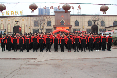 公司全體員工統(tǒng)一著裝,提前到達酒店并拍照留念。