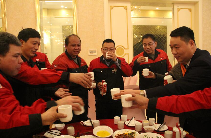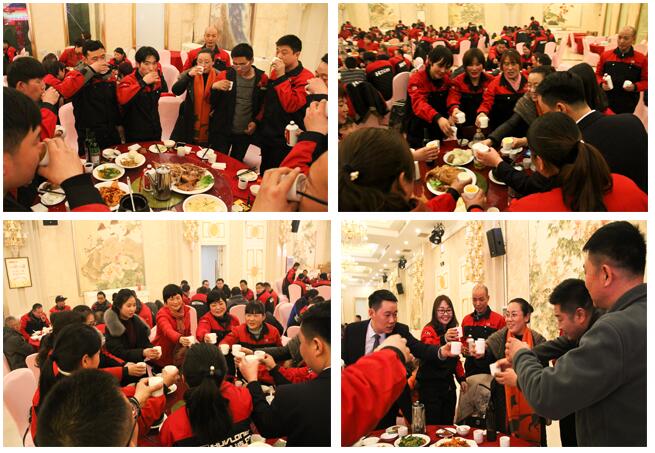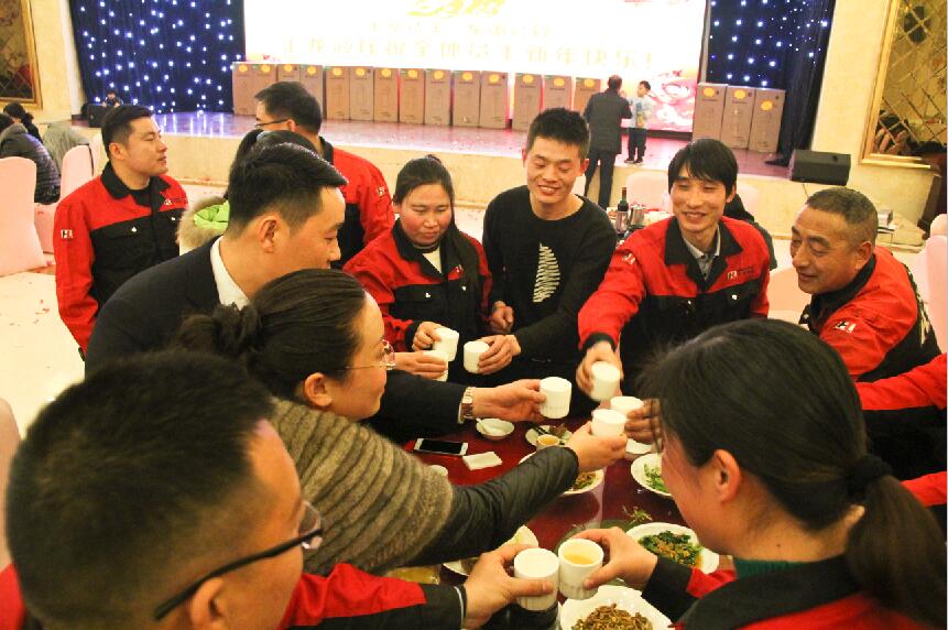 席間,董事長(zhǎng)帶領(lǐng)著部門領(lǐng)導(dǎo)來到餐桌前對(duì)全體員工表達(dá)感謝和祝福。