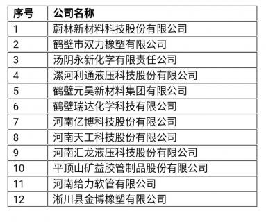 蔚林股份、鶴壁雙力、湯陰永新、匯龍液壓等12家橡膠行業(yè)企業(yè)進入該名單。