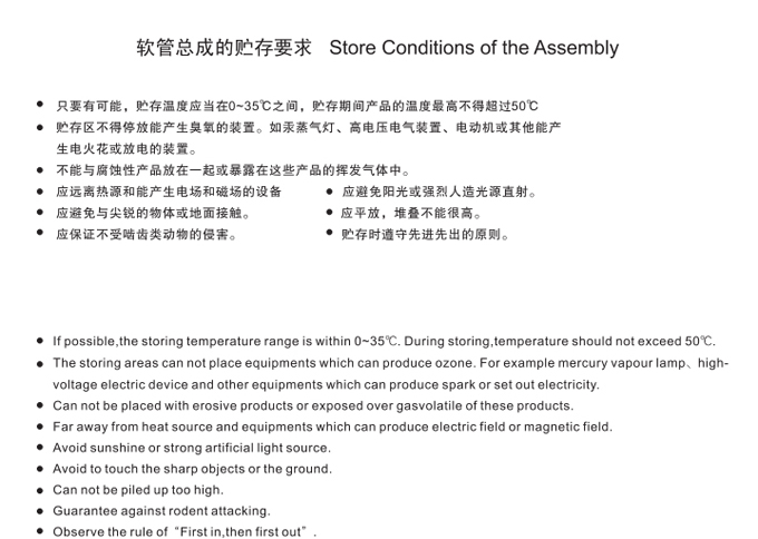 產(chǎn)品編號(hào): 軟管總成的貯存要求