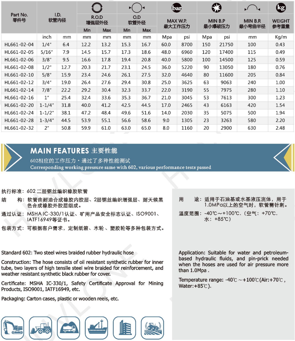 Product Usage:Suitable for water and petroleum-based hydraulic fluids,and pin-prick needed when the hoses are used for air pressure more than 1.0Mpa .