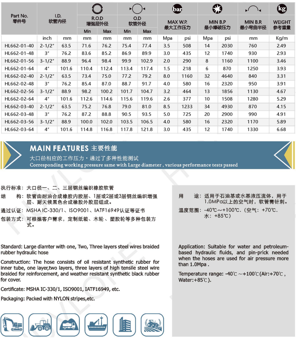 Product Usage:Suitable for water and petroleum-based hydraulic fluids,and pin-prick needed when the hoses are used for air pressure more than 1.0Mpa .