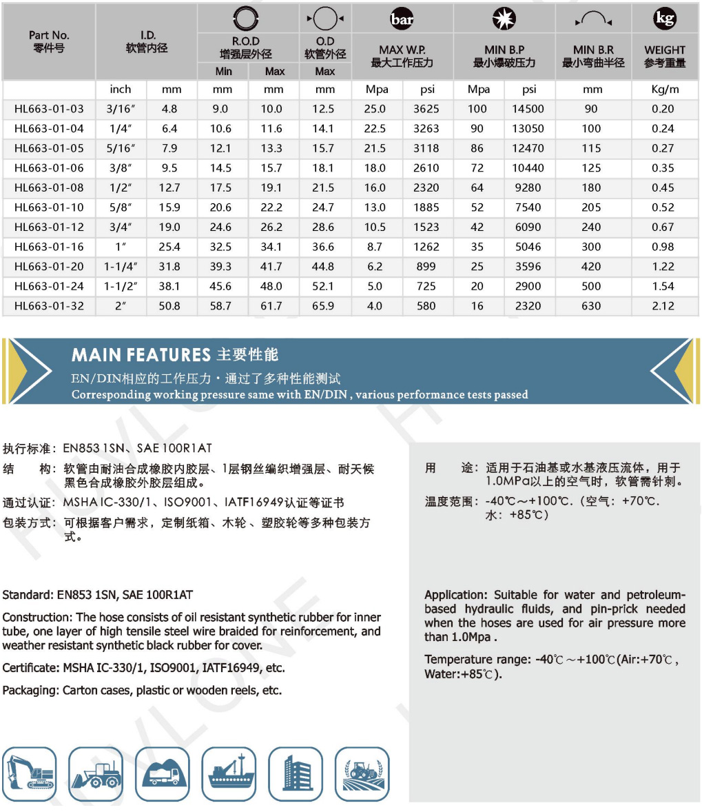 Product Usage:Suitable for water and petroleum-based hydraulic fluids,and pin-prick needed when the hoses are used for air pressure more than 1.0Mpa .