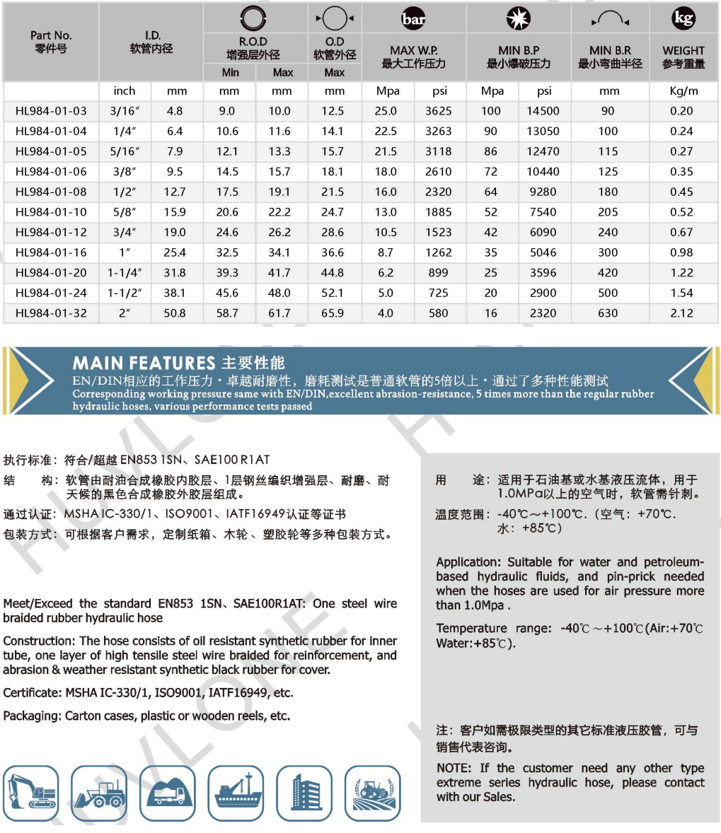 Meet/Exceed the standard EN853 1SN/SAE 100R1AT: One steel wire braided ubber hydraulic hose with abrasion-resistance